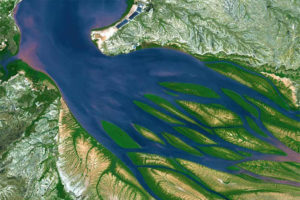 Perdues au milieu de cette photo satellite, coincées entre deux continents et deux mers aux noms sonnant comme l’aventure (Béring au sud, les Tchouktches au