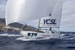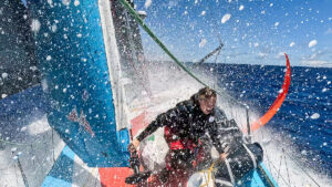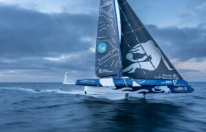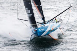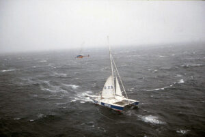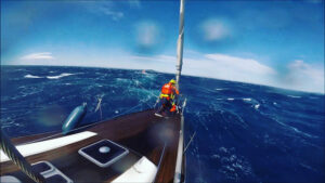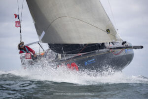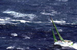 Pour les photographes, saisir l’image d’un voilier dans la tempête est complexe. Surtout au large. Il faut être en avion ou en hélicoptère. Et pas