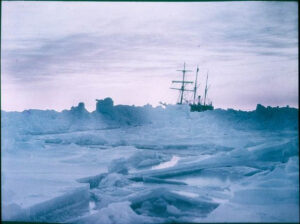 Cette photo, en couleur, d’un grand voilier prisonnier de la glace de la mer de Weddell, en Antarctique, date de 1915. Elle est rare car
