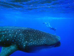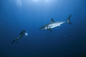 Aucun trucage dans cette photo, prise au large du Mexique lors du tournage du film Océans. L’homme, le biologiste marin François Sarano, n’est pas inquiet.