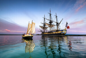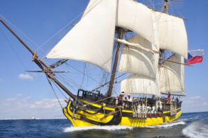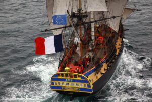 L’Hermione devrait retrouver la mer et le large. Depuis septembre 2021, la frégate est en chantier après la découverte dans sa coque, à plusieurs endroits,