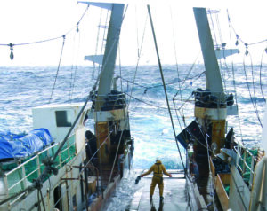 C’est un ballet pour les oiseaux de mer. Une danse à la fois coordonnée et déséquilibrée, les hommes tentant de contrôler un chalut pendant que