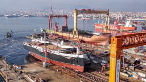 L’image, prise dans le port turc de Tuzla, date du 31 janvier dernier. La photo est celle d’un événement relativement courant, la mise à l’eau d’un