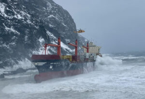 La mer était forte au large de la baie de Cedar Cove, dans l’ouest de Terre-Neuve, au Canada. Le 15 février, le MSC Baltic III, un porte-conteneurs